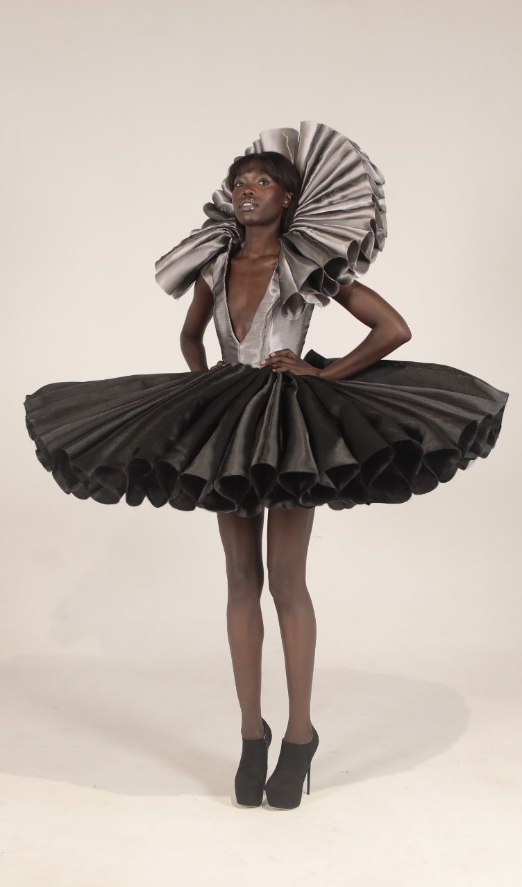 influences my designs and I like to push the boundaries of fashion (and gravity) in my work. My exploration led into my final grad collection 'ELYTRA', which was